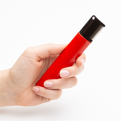 Het Mikki Classic Trimmes Fijne Vacht is de ideale tool om thuis de vacht van jouw hond uit te dunnen. Met dit trimmes creëer je de look van een handgestripte vacht, zonder de pijn en het ongemak dat gepaard gaat met strippen met de hand. Het mes heeft fijne tanden, ideaal voor het blenden en afwerken van de vacht. Daarbij is het mes voorzien van Tefloncoating om de opbouw van statische elektriciteit te verminderen. Mikki Classic verzorgingsproducten zijn ergonomisch ontworpen voor gemak en comfort. – Trimmes om thuis de vacht uit te dunnen