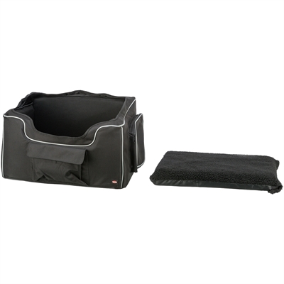 De Trixie Autostoel Hond Zwart/Grijs 56X36X37 cm is een handige autostoel voor honden, met een dik kussen voor een comfortabele autorit. Als jouw hond meereist in de auto, wil je hem natuurlijk zo veilig mogelijk vervoeren. Met een autostoel kan de hond niet vrij door de auto bewegen én heeft hij een heerlijk eigen plekje. De ruime stoel is voorzien van een riem waarmee je het stevig vastmaakt aan de stoel van de auto. Daarnaast is de autostoel voorzien van een uitsparing om de gordel bij de hond om te doen. Naast veiligheid is er ook aan comfort gedacht: de autostoel is voorzien van een inzet-kussentje van teddystof. De autostoel is gemaakt van polyester en kan opgevouwen worden, waardoor het ruimtebesparend opgeborgen kan worden wanneer het niet in gebruik is. De zijwanden zijn voorzien van twee vakken die extra opbergruimte bieden.- Stevig vast te maken autostoel voor honden