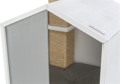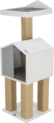 De Trixie Be Nordic Krabpaal Jonte Grijs/Wit 115 cm is een leuke krabpaal met twee ligplekken, beschut huisje en verschillende krabmogelijkheden. Deze krabpaal is een echte eyecatcher in huis! De paal geeft het gevoel van een strandhuisje, door het witte holletje op pootjes en een ligplankje. De poten en paal naar het plankje zijn omwikkeld met sisal, waar jouw kat naar hartenlust aan kan krabben. Op het ligplankje kan hij heerlijk dutten of overzicht houden wat er allemaal in huis gebeurt. Voor een goede nachtrust of meer beschutte powernap kan hij zich terugtrekken in het huisje. Zowel de plank als het huisje zijn voorzien van een comfortabel kussentje dat op de hand gewassen kan worden. Deze krabpaal is een echte must have in elk kattenhuishouden!