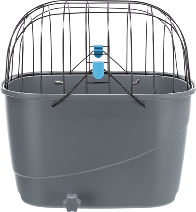 De Trixie Fietsmand voor Bagagedrager met Draadkoepel Kunststof Grijs 46X36X47 cm is een kunststof fietsmand voor de hond, met snelbevestiging en ligmat.Jouw viervoeter gaat overal mee naartoe met deze moderne fietsmand van Trixie! Weer eens wat anders dan een rieten mand voor aan het stuur is deze kunststof mand voor op de bagagedrager. De mand is door het materiaal gemakkelijk te reinigen en eenvoudig te bevestigen op alle bagagedragers met een breedte van 6 tot 16 cm. De mand is geschikt voor honden tot een maximaal gewicht van 6 kg en voorzien van een koepel van gaas met bescherming tegen klapperen en een slipvaste ligmat, die je in de wasmachine kunt wassen op 30 graden. Optioneel kan je een korthouder in de mand bevestigen, zodat de hond niet uit de mand kan springen bij het openen van de koepel. Een ideale fietsmand om jouw dier mee te nemen op fietstochtjes!
