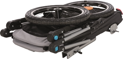 De fietskar is makkelijk in te klappen en compact op te bergen en komt met koppeling. En nog beter? Je kunt de fietskar heel gemakkelijk ombouwen tot een buggy met het los verkrijgbare voorwiel!