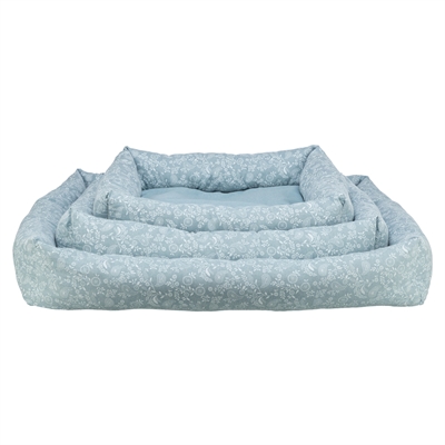 De Trixie Hondenmand Flora Hoekig Lichtblauw 60X50 cm is een origineel hondenbed van katoen met vast geïntegreerd kussen en slipvaste onderkant.