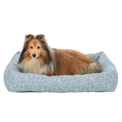 De Trixie Hondenmand Flora Hoekig Lichtblauw 75X60 cm is een origineel hondenbed van katoen met vast geïntegreerd kussen en slipvaste onderkant.