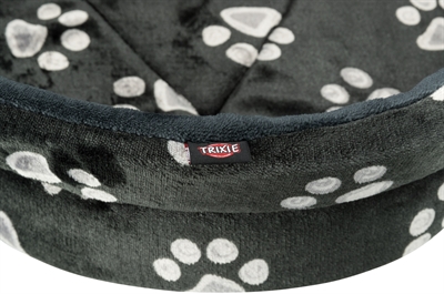 De Trixie Mand Jimmy Ovaal Zwart Met Pootprint 44 x 35 cm is een zachte hondenmand met opstaande rand en lage instap, met schuimrubber vulling, wendbaar kussen en slipvaste onderkant. Deze mand biedt jouw hond een fijne plek om in weg te kruipen. Mand Jimmy heeft een opstaande rand met schuimrubber vulling, bekleed met zacht pluche voor meer comfort en een veilig gevoel. De lage instap zorgt ervoor dat ook honden die kleiner zijn of slecht ter been zijn gemakkelijk de mand in kunnen stappen. De mand is voorzien van een wendbaar kussen en een slipvaste onderkant. Hierdoor wordt voorkomen dat de mand verschuift bij het in- en uitstappen.