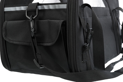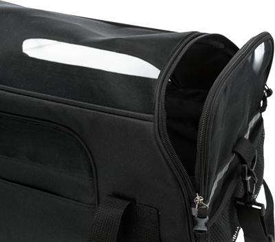 De Trixie Hondentas Madison Zwart 50X25X33 cm is een transporttas voor de hond, met beveiligde ritssluitingen, insect-werend gaas en afneembare schouderriem. Een zeer complete tas waarin je jouw dier overal mee naartoe neemt! Deze uitgebreide tas is te dragen aan de hengsels of als schoudertas, met de afneembare schouderriem. De tas is aan de voorkant te openen en de ritssluitingen zijn beveiligd met gespen, die het ongewenst openen van de tas verhinderen. Extra fijnmazig gaas beschermt de passagier tegen insecten en de korthouder zorgt ervoor dat deze niet per ongeluk uit de tas kan springen. Door de uitneembare, gevoerde bodemplaat is het bovendien comfortabel reizen voor jouw viervoeter. Een zeer complete, veilige tas die comfortabel is voor mens en dier!