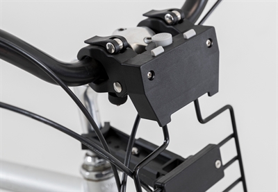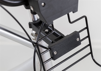 – De houder klemt om het stuur, waarna je de mand op het frame kunt plaatsen