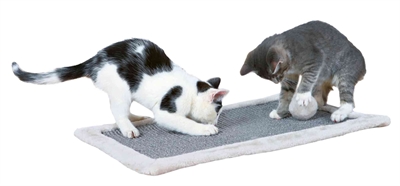 Trixie Krabmat Sisaltapijt/ Pluche Grijs/ Lichtgrijs 55X35 cm 2st is een krabmat die hangend of op de grond kan neerleggen voor de kat. De zijkanten en bovenkant van de krabmat zijn gemaakt van sisal waar de kat lekker zijn nagels in kan leggen. Het middenstuk van de mat is gemaakt van pluche (polyester) daar kan de kat lekker aan krabben voor speelplezier. – Trixie Krabmat