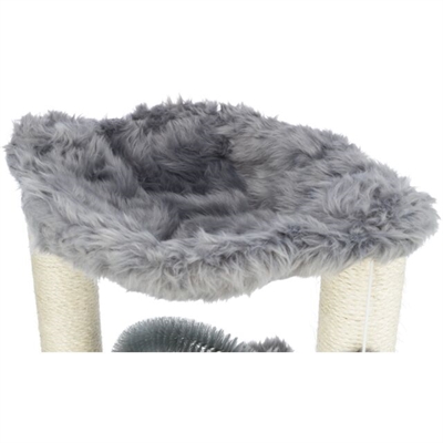 De Trixie Krabpaal Baza Met Borstel Grijs 50 cm is een krabpaal met twee palen, sisal touw, een bedje en een borstel waar katten heerlijk kunnen slapen en de nagels kunnen scherpen. Deze compacte krabpaal bestaat uit twee palen die omwikkeld zijn met sisaltouw. Hieraan kan jouw kat naar hartenlust de nagels slijpen. De bodemplaat is bedekt met zacht, grijs pluche en bevat een borstel in de vorm van een boog. Hier kan de kat heerlijk kopjes aan geven en mee kroelen. Tijdens de seizoenen waarin de kat verhaart, helpt het de losse haren uit de vacht te verwijderen. Bovenop de twee palen is een zacht mandje van grijs pluche waar de kat heerlijk in kan dutten.