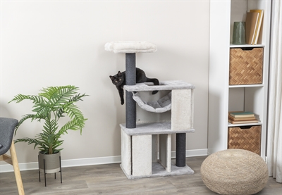 De Trixie Krabpaal Juliano Grijs 115 cm is een mooie krabpaal in strak ontwerp met jute en verschillende ligplekken. Krabben is een natuurlijke behoefte voor de kat. Hiermee markeert de kat zijn territorium en verzorgt hij zijn nagels. Voorkom dat jouw kat krabt aan meubilair met voldoende krabmogelijkheden, zoals deze mooie krabpaal van Trixie. Deze paal bevat verschillende ligplekken en een hangmat. De ligplekken en hangmat zijn gemaakt van heerlijk zacht materiaal en zijn bekleed met pluche voor meer slaapcomfort. Deze mooie paal hoort thuis in elk kattenhuishouden.