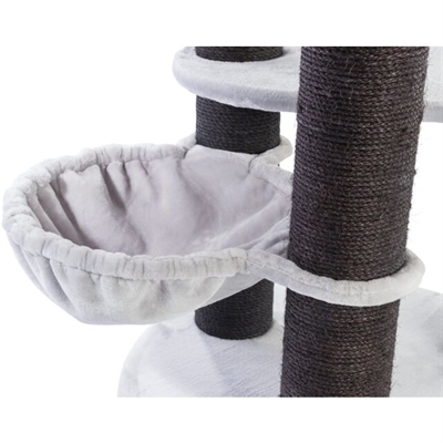De Trixie Krabpaal Tulio XXL Grijs 203cm is een grote krabpaal die geschikt is voor grote katten met verschillende niveaus, slaapplekken en krabpalen met sisaltouw. Deze Tulio krabpaal zal een echte eyecatcher zijn in huis, niet alleen door het formaat maar ook door het mooie ontwerp! De krabpaal is in totaal wel 203 centimeter hoog en heeft veel verschillende niveaus om te slapen, spelen, klimmen en de nagels te scherpen. De schuilplaats en relax-mand zijn verwijderbaar en geschikt voor handwas. Daarnaast bevat deze krabpaal ook nog een slaapzak én een loopplank. Door het formaat en de dikke, massieve onderplaat ook uitermate geschikt voor grote katten!