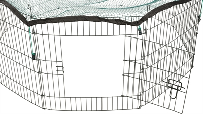De ren bestaat uit acht panelen en is voorzien van een deur. De maaswijdte is 1X1 cm.- Ren voor knaagdieren van metaal