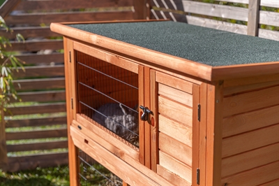 De Trixie Natura Konijnenhok met Ren Bruin 116x97x63 cm is een knaagdierhok met ren en twee verdiepingen, gemakt van hout en gepoedercoat tralies. Met dit hok leeft jouw knager als een koning of koningin. Het hok van gebeitst vurenhoud heeft twee verdiepingen die af te scheiden zijn met een bodemluik en stevig, gepoedercoat metalen traliewerk. Het dak is bekleed met bitumen en het hok biedt schuilmogelijkheden. Door de kunststof schuiflade is het hok makkelijk en snel schoon te maken. Het hok open je van boven door het dak te openen, waardoor je overal bij kan. De houten achterwand in de ren dient als windscherm.