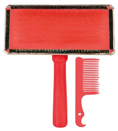 De Trixie Borstel Houten Greep / Metalen Pinnen Assorti van 14 x 11 cm per 3 stuks is een zachte borstel met metalen pinnen en borstelreiniger, geschikt voor alle vachttypen. Met de prettige borstel van Trixie houd jij de vacht van jouw hond glad en glanzend. Deze borstel is voorzien van metalen pinnen, waarmee je losse haren uit de vacht verwijdert en de vacht glad en glanzend maakt. Door de borstelreiniger die is meegeleverd is het eenvoudig de losse haren uit de borstel te verwijderen. Met houden greep, wordt assorti geleverd in diverse kleuren.