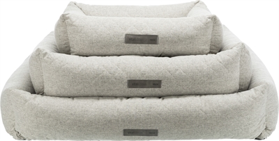 Trixie Vital Hondenmand Noah Hoekig Lichtgrijs 60 x 50 cmDe Trixie Vital Hondenmand Noah Hoekig Lichtgrijs 60 x 50 cm is een orthopedische hondenmand met memory-effect, gevulde rand en geïntegreerd kussen. Een goede slaapplek is belangrijk voor het welzijn van elke hond. Honden slapen vele uren per dag en een verkeerde ondergrond kan op latere leeftijd problemen met spieren, gewrichten en het gestel van de hond opleveren. Deze orthopedische mand van Trixie heeft daarom een ligoppervlak met visco-elastische schuimvlokken en schuimrubber vlokken met memory-effect. Dit zorgt voor een goede verdeling van het gewicht zonder dat bepaalde lichaamsdelen te veel belast worden. De mand is eveneens voorzien van een rand met polyestervlies vulling voor meer steun en bekleed met geweven stof van zacht polyester. Het kussen is geïntegreerd om schuiven te voorkomen en heeft een slipvaste onderkant zodat het niet verschuift bij het in- en uitstappen. Met afneembare, (hand)wasbare bekleding voor een lange levensduur!