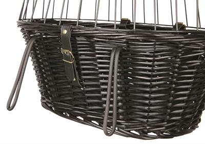 Trixie wilgen fietsmand voorop zwart met kussen en kap