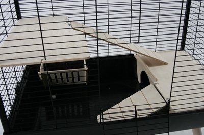 Deze mooie knaagdierkooi is niet alleen een aanwinst voor jouw dier, maar ook voor jezelf! De Zolux Neo Muki is een zeer ruime kooi met een een breedte én hoogte van bijna 80 centimeter. Ideaal voor dieren die graag de hoogte ingaan, zoals ratten en grote hamsters! De kooi is uitgerust met een houten huisje dat gelijk dienstdoet als plateau en door middel van een trap in verbinding staat met nog een plateau. In de bijgeleverde, bijpassende houten ruif kun je jouw dier hooi en andere lekkernijen aanbieden. De kooi staat op houten poten, zodat het dier meer overzicht heeft en minder last van tocht. Voor een goede bereikbaarheid is de kooi uitgerust met een grote, vergrendelbare opening aan de bovenzijde en een dubbele aan de voorzijde. Een fijne kooi voor jouw dier dus en door de stoere Scandinavische stijl ook voor jou!